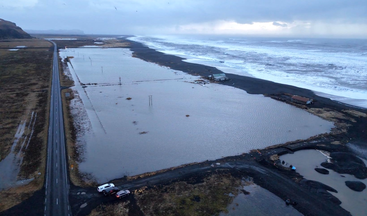 Mikill sjór gekk á land við Vík í Mýrdal í vikunni með þeim afleiðingum að flóð myndaðist austan við þorpið og sunnan við Þjóðveg 1. Mikill sjór safnaðist saman austan við bæinn og tveimur kílómetrum fyrir austan við Vík gekk sjór upp að þjóðveginum.