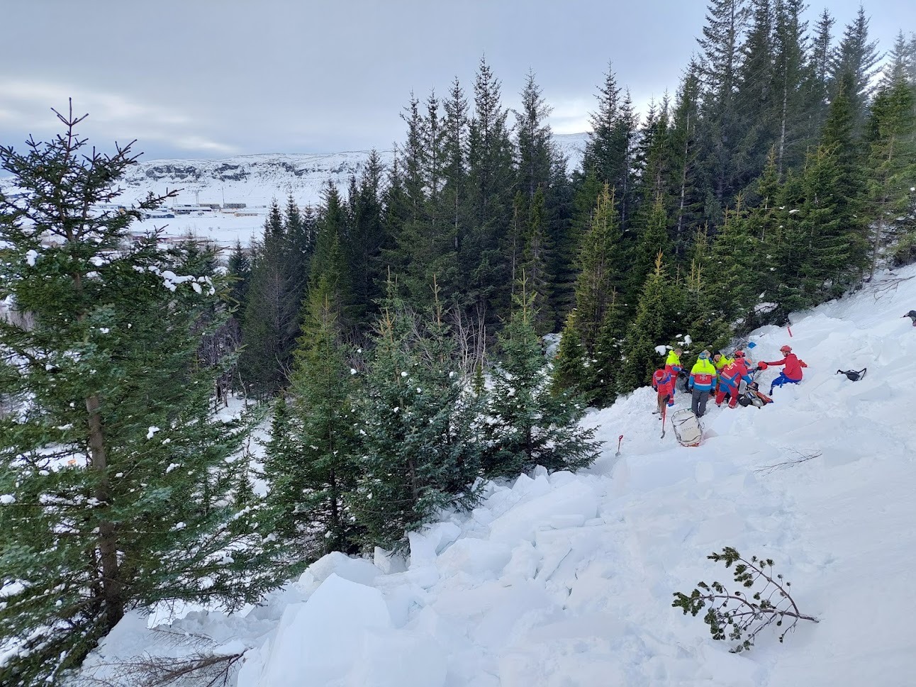 Hafði snjóhengja fallið niður hlíð Hamarsins þar sem börn voru að leik. Fjórtán ára bróðir drengsins sýndi mikið snarræði og hárrétt viðbrögð er hann staðsetti bróður sinn í flóðinu, gróf frá andliti hans og hringdi eftir aðstoð til Neyðarlínu 112.