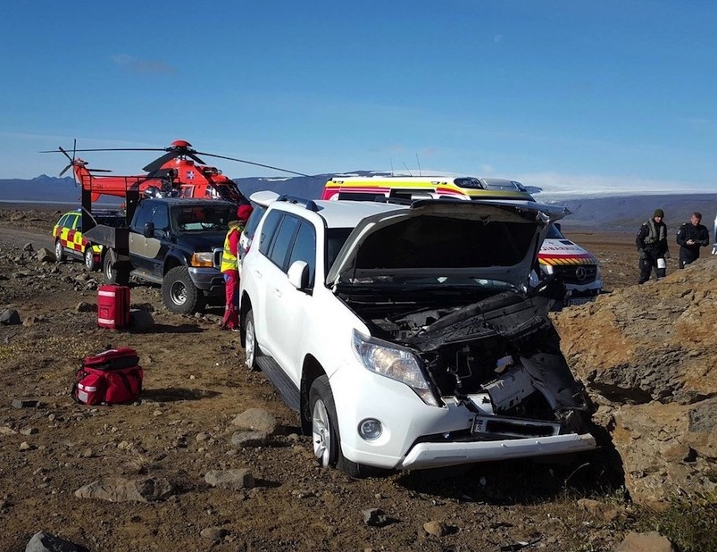 Ekki reyndist þörf á að beita klippum en ökumaðurinn og annar farþeginn voru fluttir á sjúkrahús með þyrlu. Hinn farþeginn var óslasaður og hélt för áfram með hópnum sem þau voru í.