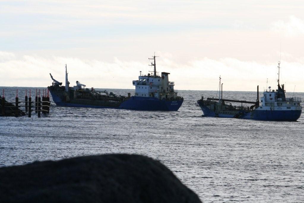Dýpkunarskipið Perla er komið til Landeyjahafnar þar sem skipið verður notað ásamt dæluskipinu Skandiu við dýpkun hafnarinnar næstu daga.