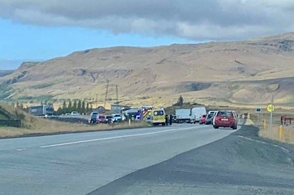 Samkvæmt upplýsingum frá Vegagerðinni má búast við töfum eitthvað áfram en slysið varð á fjórða tímanum í dag.