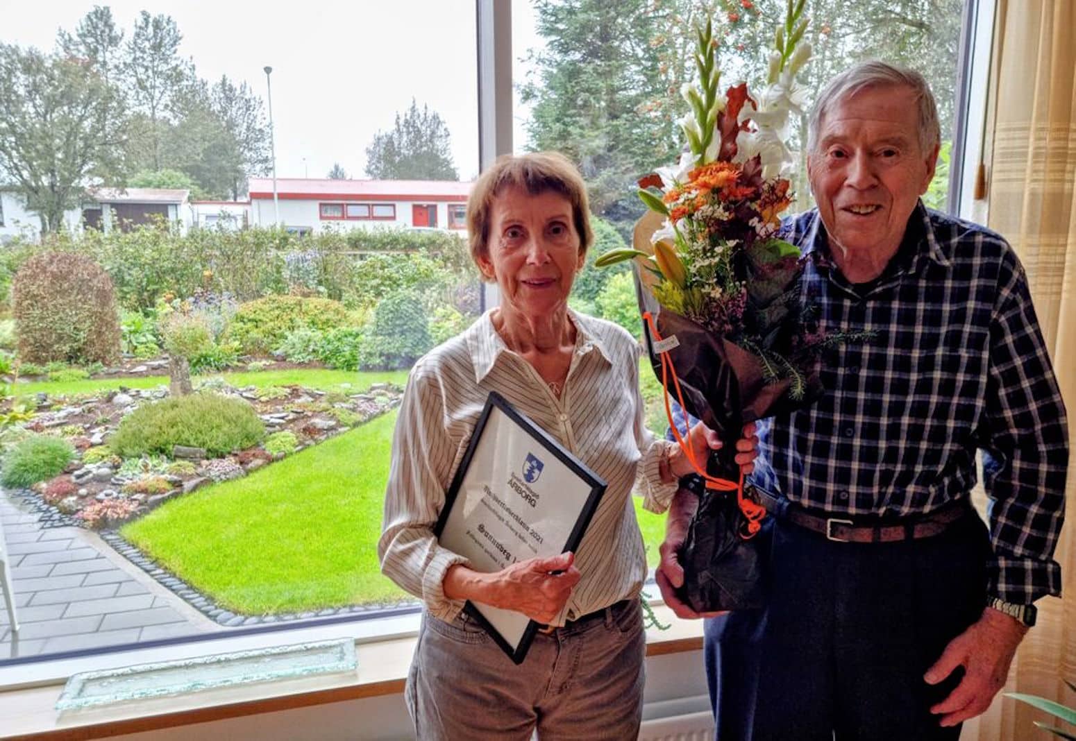 Verðlaunin fyrir fallegasta garðinn í Árborg og komu í hlut hjónanna Sigríðar Tómasdóttur og Guðmundar Halldórsson að Sunnuvegi 16 á Selfossi. Sigríður og Guðmundur hlutu sambærilega viðurkenningu frá Selfossbæ árið 1980 og hafa sannarlega ræktað vel sinn garð frá þeim tíma. Garðurinn er einstaklega fallegur og þar má finna fjölær skrautblóm, trjátegundir og matjurtir. Grasflatirnar eru snyrtilegar og rammaðar inn af fallegum fjörusteinum.