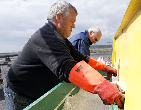 Í síðustu viku var hafist handa við sáningu og áburð á Sólheimasandi en gríðarlegt magn gjósku veldur því að vegurinn um sandinn er nokkuð hættulegur vegna lélegs skyggnis þegar vindur blæs.