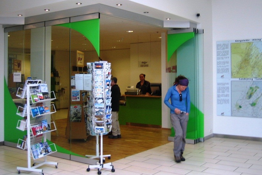 Slíkt er þó alls ekki raunin heldur hefur Upplýsingamiðstöðin fengið allt annað og betra yfirbragð þar sem Sparisjóðurinn var áður með afgreiðslu. Miklu léttara er yfir ásýnd rýmisins og rúmbetra fyrir viðskipavini sem aftur mun skila sér í enn betri þjónustu við þá fjölmörgu sem átt hafa góð viðskipti við Upplýsingamiðstöðina í gegnum tíðina.