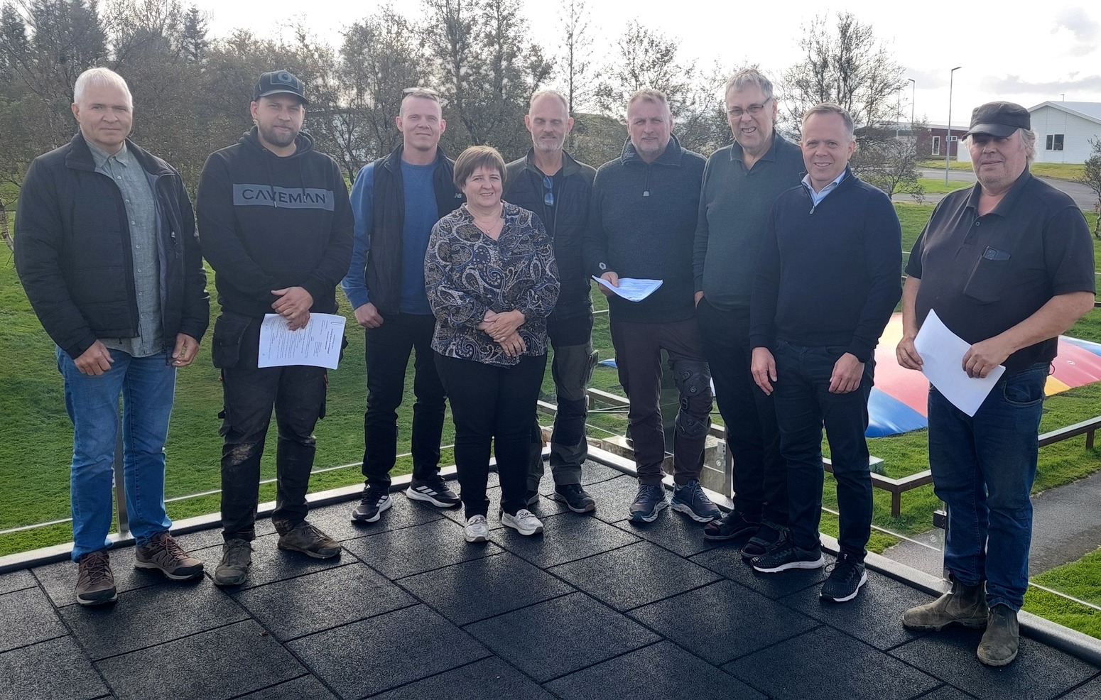 Í gær var ritað undir samning Bláskógabyggðar við Norðanmenn ehf, Flúðaverktaka ehf og Rörið ehf um endurnýjun útisvæðis sundlaugarinnar í Reykholti.