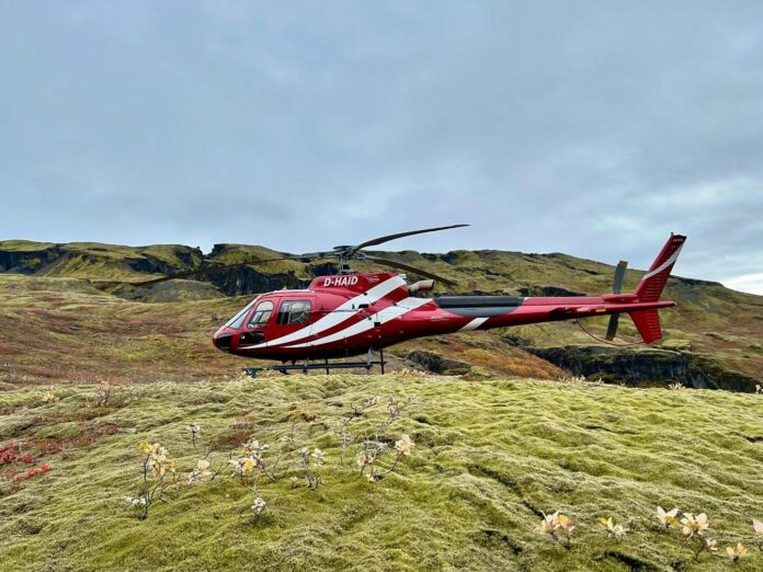 Björgunarfólk hélt fótgangandi að staðnum og skömmu síðar bauð Atlantsflug fram þyrlu sem er í Skaftafelli til að staðsetja manninn og flytja bjargir að honum. Sjúkraflutningamaður frá Heilbrigðisstofnun Suðurlands fór með þyrlu Atlantsflugs og skömmu síðar komu þau auga á manninn. Þyrlan lenti fyrir ofan slysstað og sjúkraflutningamaður gekk niður að manninum.