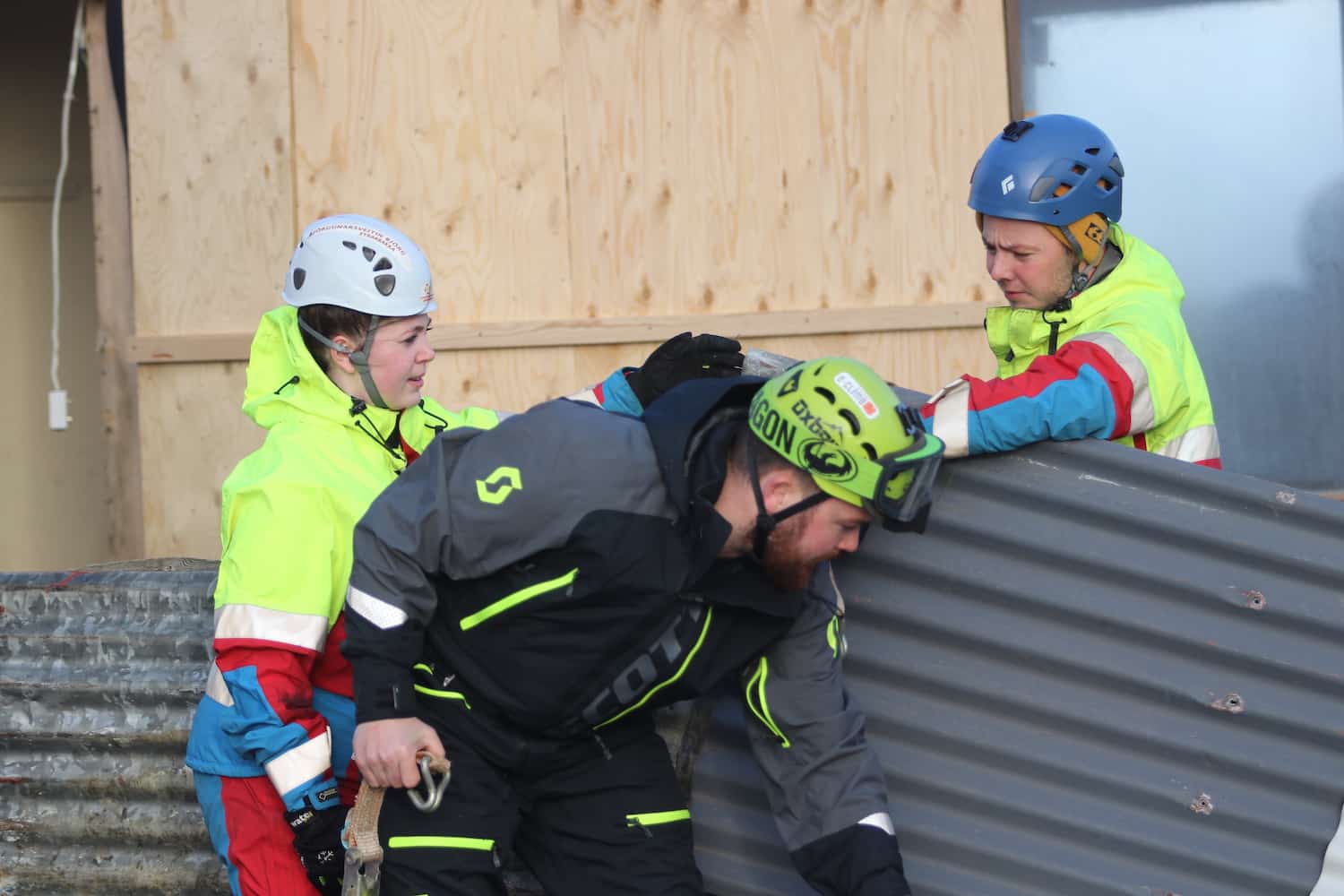 „Það er óhætt að segja að dagurinn sé búinn að vera nokkuð erilsamur. Fyrsta útkallið kom tuttugu mínútur fyrir tvö og þetta er fyrst að byrja að róast núna,“ sagði Ægir Guðjónsson, formaður Björgunarsveitarinnar Bjargar á Eyrarbakka, í samtali við sunnlenska.is, þegar hann og félagar hans voru nýbúin að strappa niður bárujárnsplötur í hesthúsahverfinu á Eyrarbakka um klukkan hálf sex.