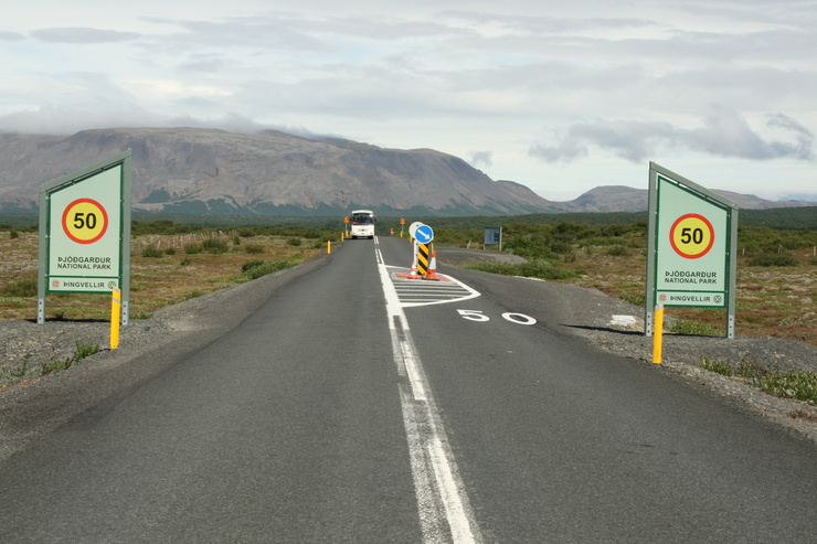 Vegagerðin hefur ákveðið að umferðareyjar í tveimur þéttbýlishliðum inn í þjóðgarðinn á Þingvöllum verði teknar niður. Yfirborðsmerkingar munu halda sér en þær verða bættar.