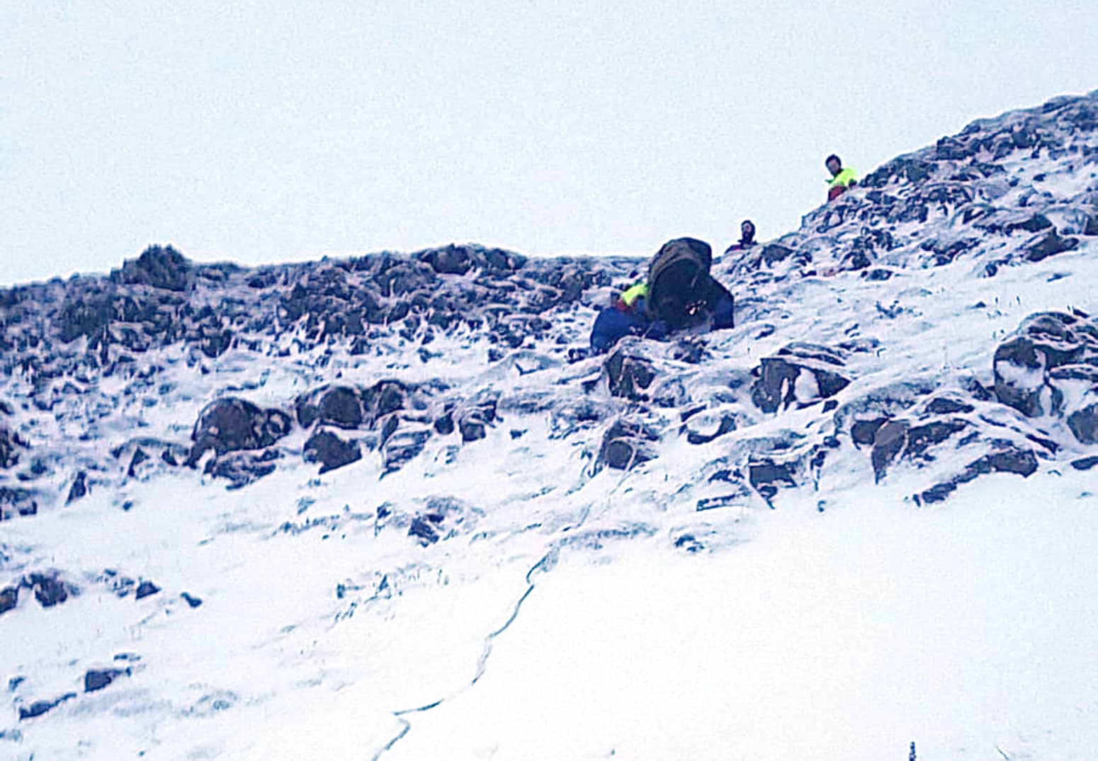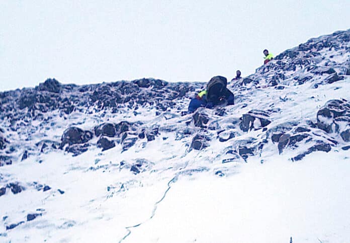 Björgunarsveitarfólk fór vel búið á vettvang, fann manninn og náðu að hjálpa honum úr sjálfheldunni og aðstoða veiðimennina báða niður af svæðinu.