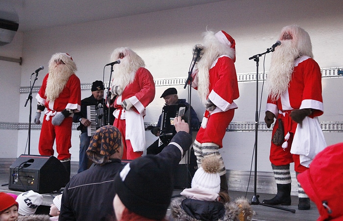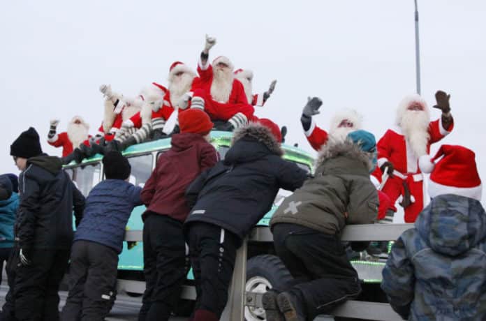 Það var frábær stemmning við Ölfusárbrú þegar jólasveinarnir úr Ingólfsfjalli heilsuðu upp á börn og fullorðna á Selfossi í dag.