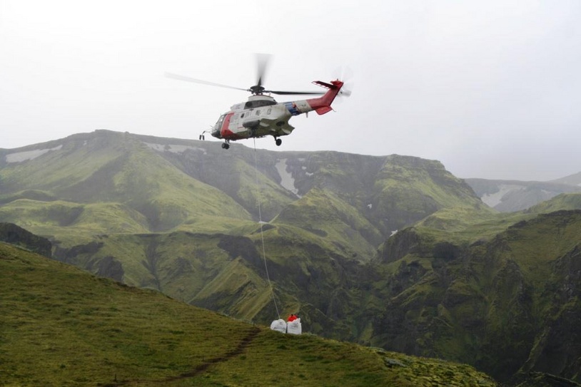 Sendir voru vélsleðar, bílar og snjóbíll á jökulinn. Sleðahópum frá Björgunarsveitinni Kyndli í Mosfellsbæ, sem voru á ferð á Syðra Fjallabaki, var einnig beint á slysstað.