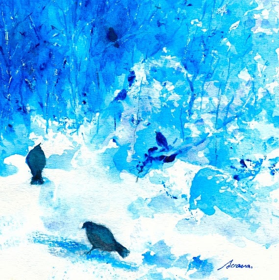 Jólakortin og merkispjöldin eru með myndinni Bjartur dagur á aðventu eftir Svövu Sigríði Gestsdóttur, myndlistarmann.