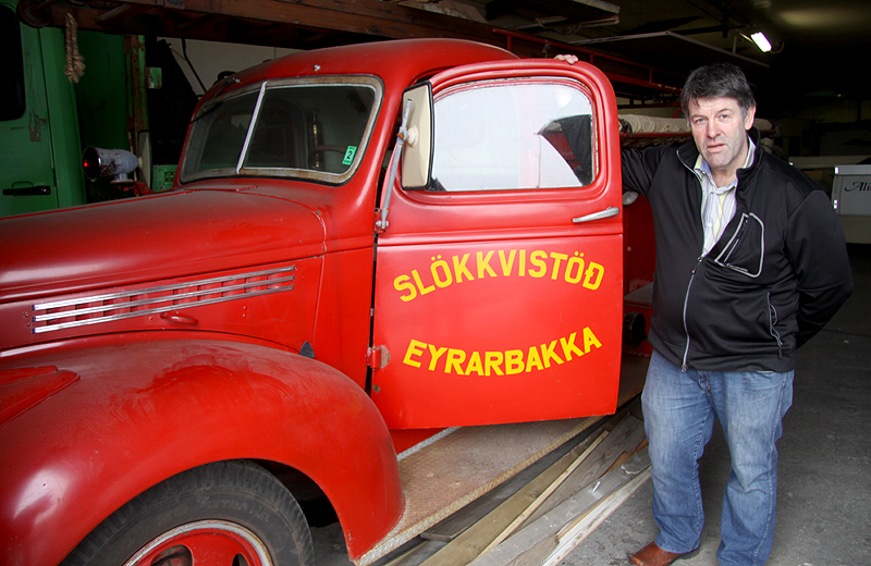 Eyrbekkingurinn Vigfús Markússon vill sjá gamla slökkvibílinn á Eyrarbakka aftur á götunni. Bíllinn er í eigu Sjóminjasafnsins og hefur safnað ryki undanfarin ár.