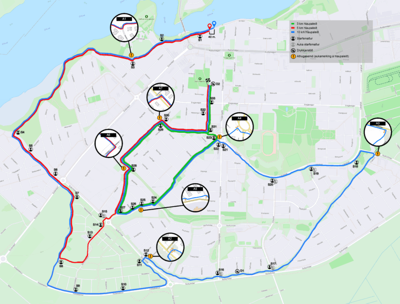 Hlaupavegalengdir eru 10 km, 5 km, 3 km ásamt ca. 800 m Sprotahlaupi fyrir krakka 8 ára og yngri. Einnig fer fram keppni í 5 km skemmtihjólreiðum. Allar hlaupaleiðir eru löggildar og mældar upp af viðurkenndum aðila og er tímataka með flögum í öllum vegalengdum. Hlaupið er viðurkennt og vottað af Frjálsíþróttasambandi Íslands. Neðst í fréttinni má sjá tímasetningar á ræsingum í öllum vegalengdum og kort af hlaupaleiðum.