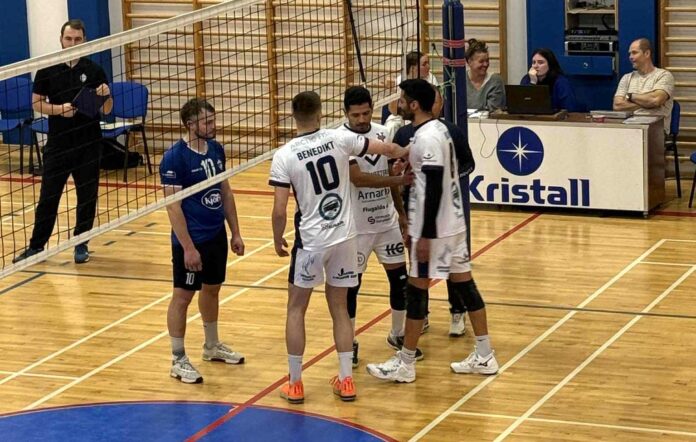 Hamarsmenn unnu fyrstu hrinuna 25-18. Vestri jafnaði svo 25-22 og þriðja hrinan var jöfn og spennandi, en lauk þó með sigri heimamanna 26-24.