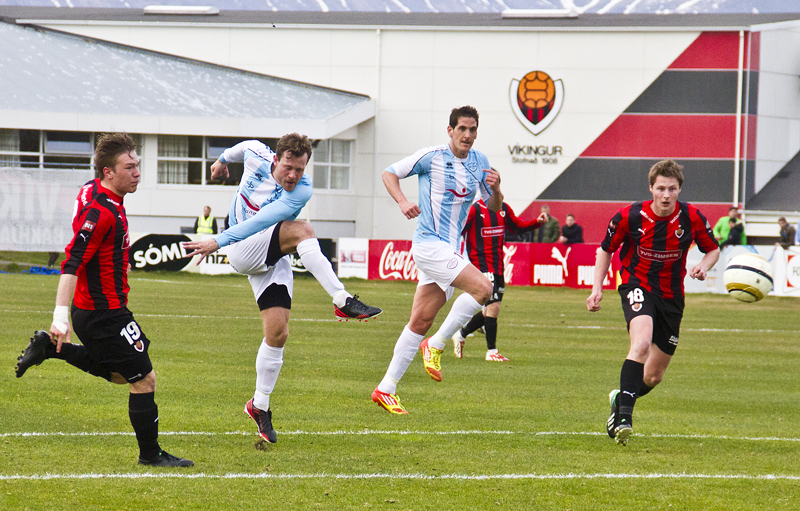 Ingólfur fékk boltann rétt fyrir framan vítateiginn, fór framhjá einum leikmanni Víkinga og hamraði boltann svo ofarlega í hornið fjær – fallegt mark hjá söngvaranum.