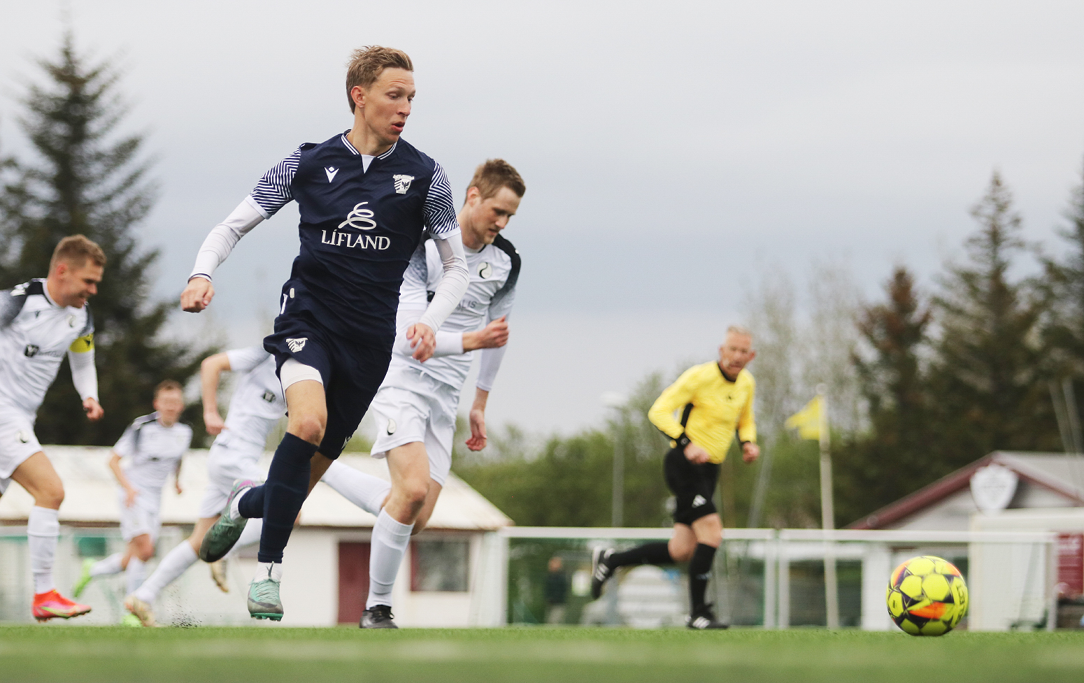 Árborg tók á móti Elliða í 4. deild karla í knattspyrnu í hífandi roki á Selfossvelli í kvöld.
