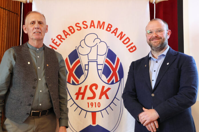 Á 103. Héraðsþingi HSK í Aratungu síðastliðinn fimmtudag heiðraði Héraðssambandið Skarphéðinn tvo félagsmenn. Björn Bjarndal Jónsson, fyrrverandi formaður HSK og UMFÍ, var sæmdur gullmerki sambandsins og Guðni Sighvatsson, gjaldkeri glímuráðs HSK var sæmdur silfurmerki.