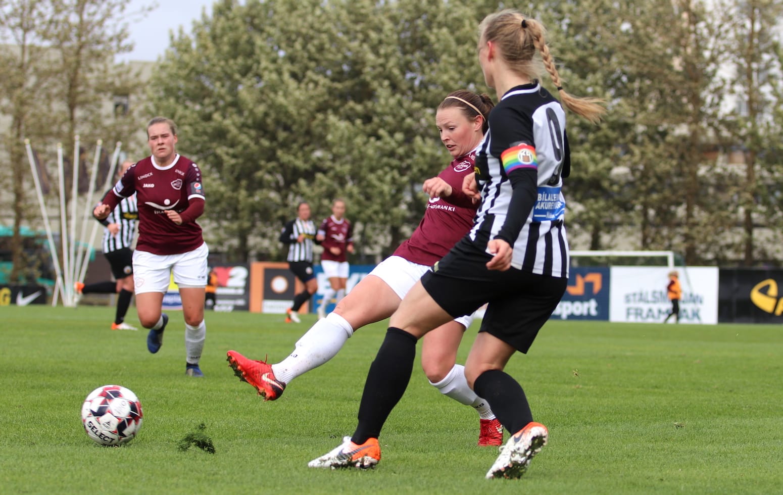 Það var rok og rigning á köflum í Vesturbæ Reykjavíkur og völlurinn mjög blautur og þungur. Liðin gerðu sitt besta úti á vellinum og inn á milli sáust fín tilþrif af beggja hálfu.