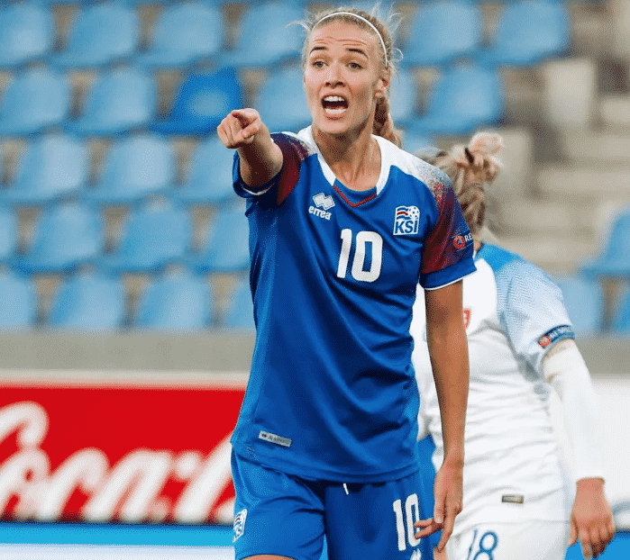 Dagný Brynjarsdóttir skoraði eitt af mörkum Íslands sem vann stórsigur á Lettlandi í undankeppni EM kvenna í knattspyrnu, í Lettlandi í dag.