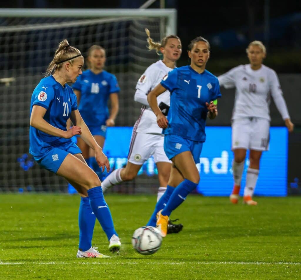 Bárbara Sól Gísladóttir spilaði sinn fyrsta A-landsleik í dag en hún kom inná í hálfleik fyrir Dagnýju. Barbára stóð sig mjög vel í leiknum og lét til sín taka í sóknarleik Íslands, en hún lagði upp tvö af þremur mörkum Íslands í seinni hálfleiknum.