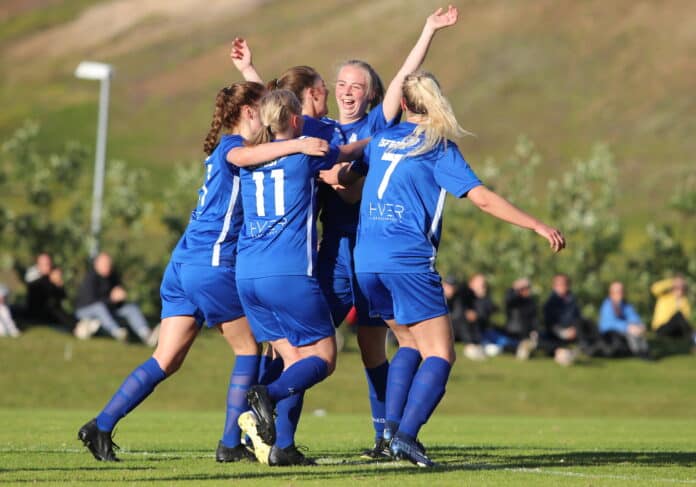 Fyrri hálfleikurinn var markalaus allt þar til á 38. mínútu að Harpa Hlíf Guðjónsdóttir kom boltanum í netið eftir góða aukaspyrnu Sunnevu Sigurvinsdóttur.