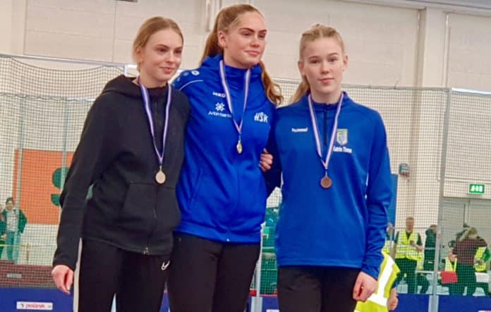 Eva María Baldursdóttir setti mótsmet þegar hún tryggði sér Íslandsmeistaratitilinn í hástökki stúlkna 16-17 ára. Eva María stökk yfir 1,72 metra sem er einum sentimetra frá hennar besta árangri innanhúss.
