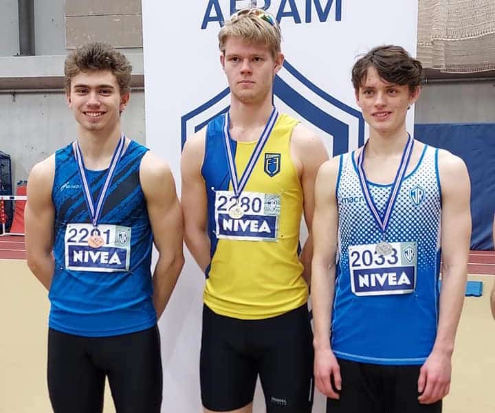Veigar Þór Víðisson, Garpi/Heklu, var sömuleiðis fastagestur á verðlaunapallinum. Hann sigraði í hástökki, langstökki og kúluvarpi í flokki 15 ára pilta, hlaut silfur í þrístökki og brons í 60 m hlaupi og 60 m grindahlaupi.