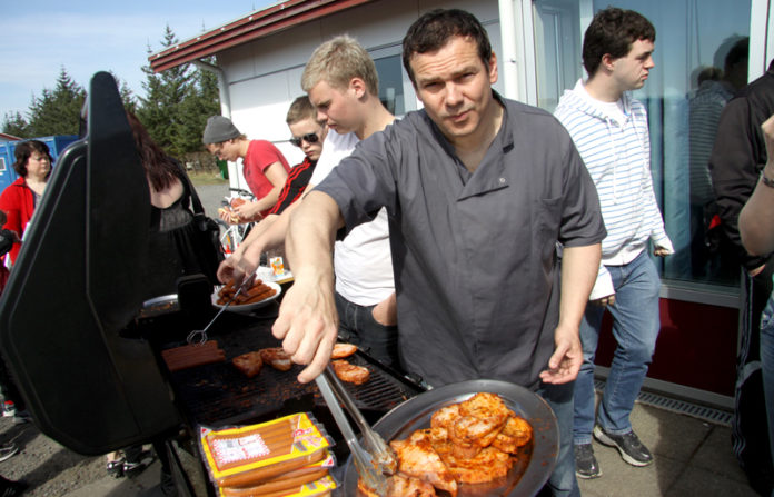 Fjölmargir gestir nutu sumarblíðunnar undir berum himni og torguðu fleiri kílóum af pylsum og grillkjöti.