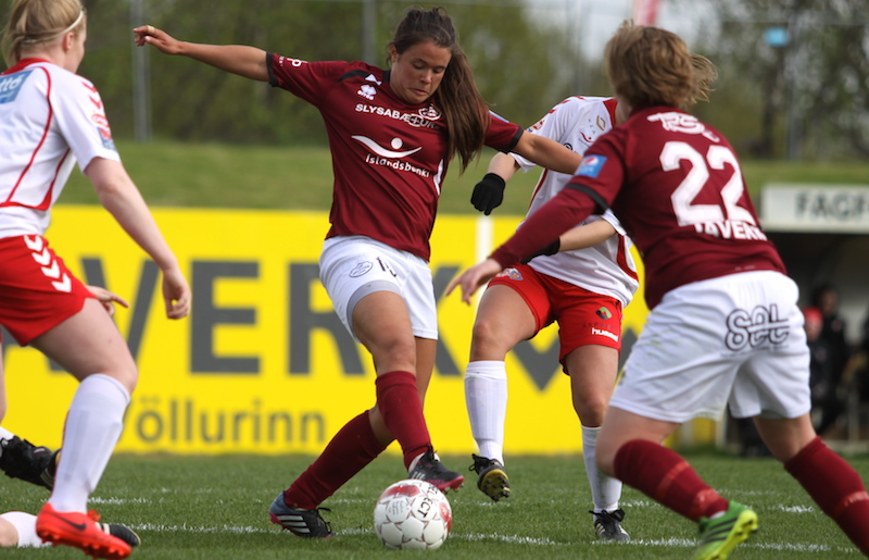 Það voru landsliðskonurnar í liði Selfoss sem sáum um að skora mörkin, Guðmunda Óladóttir skoraði tvö mörk, annars vegar á 20. mínútu og svo á 65. mínútu, og Dagný Brynjarsdóttir skoraði sitt mark á 24. mínútu. Þær áttu svo nokkur prýðisfæri en fleiri urðu mörkin ekki.