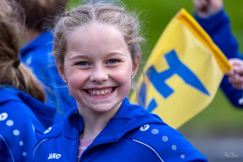Það var glæsilegur HSK hópurinn sem gekk inn á völlinn á setningarhátíð mótsins, en allir keppendur sambandsins fengu að gjöf bláa HSK treyju merkta HSK og Arion banka. Bankinn er aðalstyrktaraðili HSK og samstarfið ein aðalforsenda þess að hægt sé að afhenda treyjuna endurgjaldslaust.