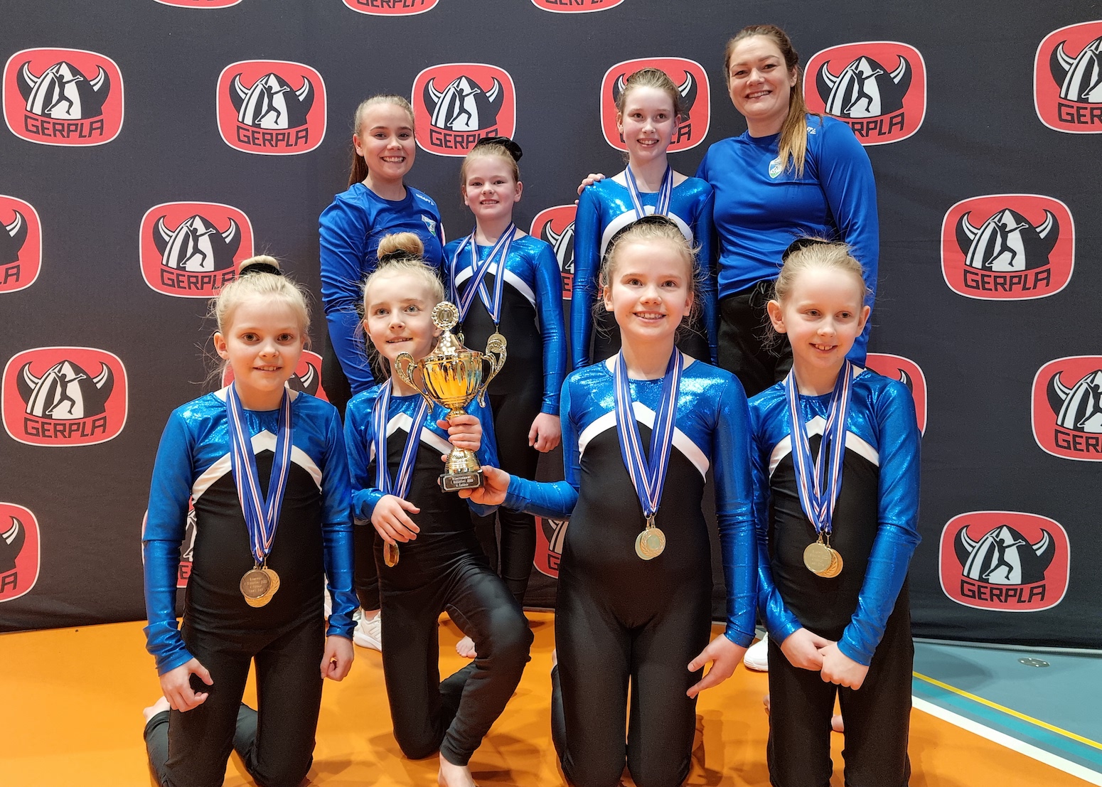 Um var að ræða frumraun beggja flokka á móti en gríðarleg ánægja er innan deildarinnar með að fara aftur af stað með keppnishópa í hópfimleikum eftir langa hvíld.