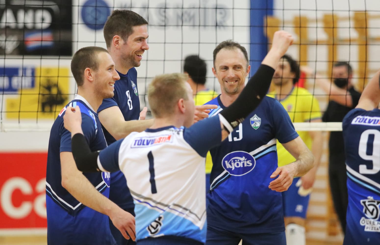 Karlalið Hamars í blaki tók í dag á móti KA í fyrstu úrslitaviðureigninni um Íslandsmeistaratitilinn.