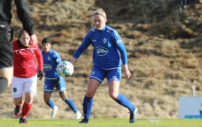 Íris Sverrisdóttir kom Hamri í 0-2 á tíu mínútna kafla undir lok fyrri hálfleiks en Einherji minnkaði muninn á lokamínútu fyrri hálfleiks og staðan var 1-2 í leikhléi.