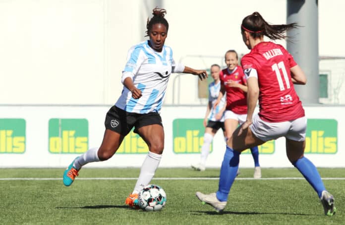 Valur komst yfir á 12. mínútu en eftir markið bökkuðu þær nokkuð og leyfðu Selfyssingum að vera með boltann. Selfossliðið skapaði sér ekki mörg færi í fyrri hálfleik og staðan í leikhléi var 0-1.