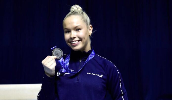 Hildur Maja skrifar sig þar með í sögubækurnar en hún er fyrst allra íslenskra kvenna til þess að vinna til verðlauna á heimsbikarmóti (World Challenge Cup) í áhaldafimleikum.