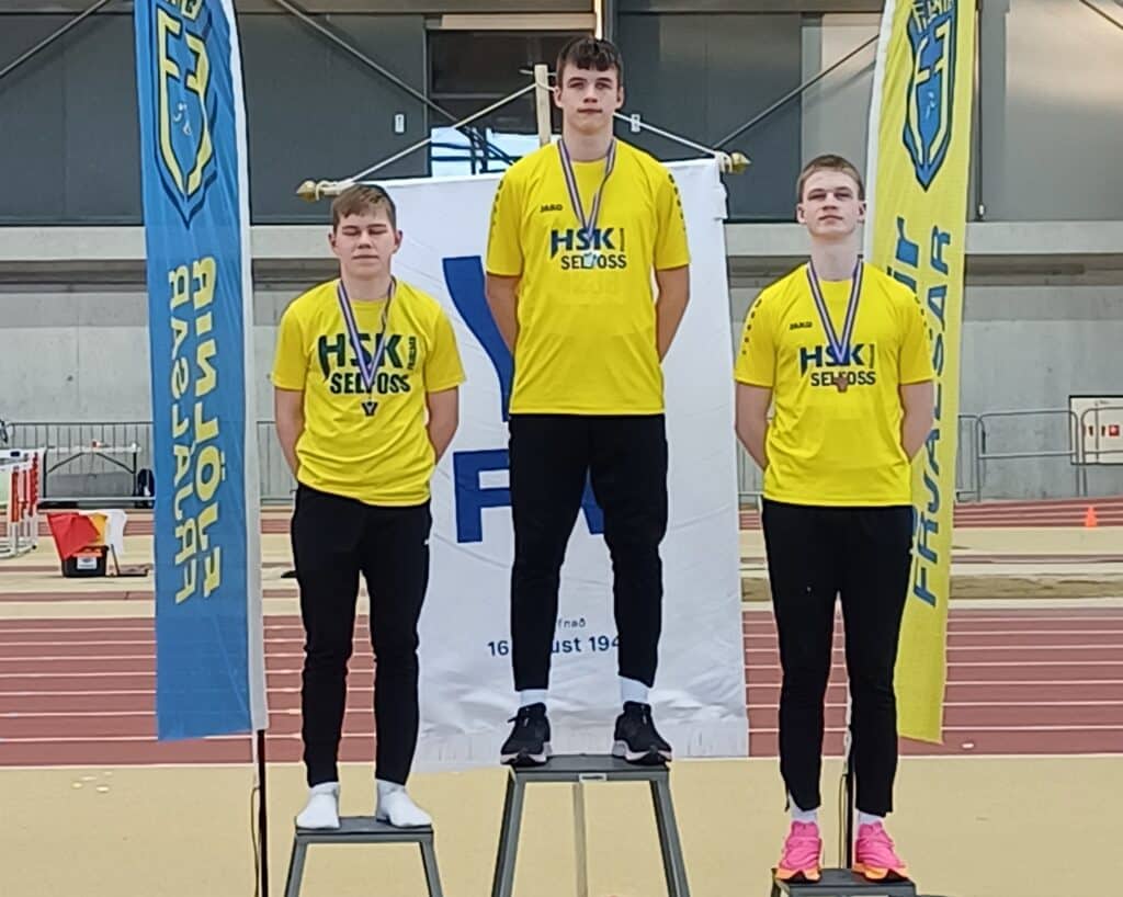 Lið HSK/Selfoss sigraði með miklum yfirburðum í stigakeppni félagsliða á Meistaramóti Íslands 15-22 ára í frjálsum íþróttum sem haldið var í Laugardalshöllinni um síðustu helgi. Tíu héraðsmet féllu á mótinu.