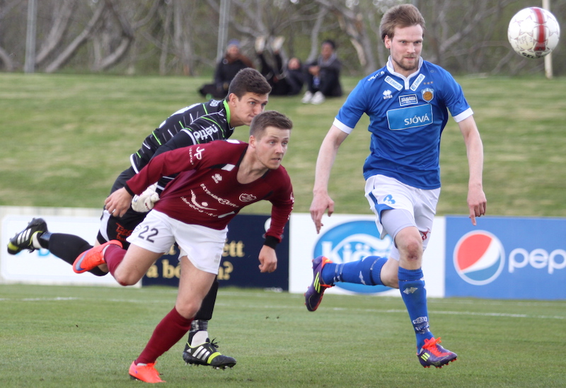 Luka Jagacic átti þá frábæra sendingu innfyrir á Ingþór Björgvinsson, hann vippaði boltanum snyrtilega yfir markvörð Framara og stakk sér svo sjálfur á eftir boltanum og skallaði hann í netið.