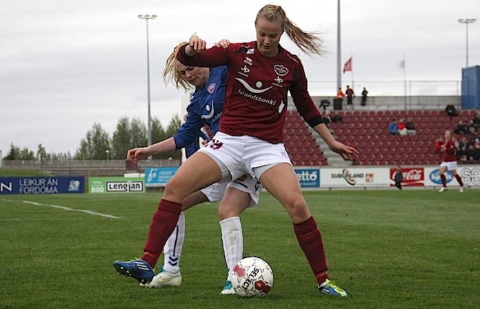 Erna Guðjónsdóttir kom Selfyssingum yfir á 33. mínútu og þremur mínútum síðar skoraði Eva Lind Elíasdóttir, 0-2 í hálfleik.