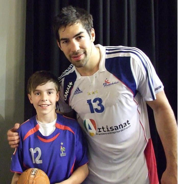 Teitur Örn Einarsson hitti Karabatic í Laugardalshöllinni fyrir tíu árum síðan, þegar Teitur var 10 ára og fékk ungi aðdáandinn mynd af sér með stjörnunni. Athygli vekur að Teitur er klæddur frönsku landsliðstreyjunni á myndinni og því greinilega mikill aðdáandi Frakkanna.