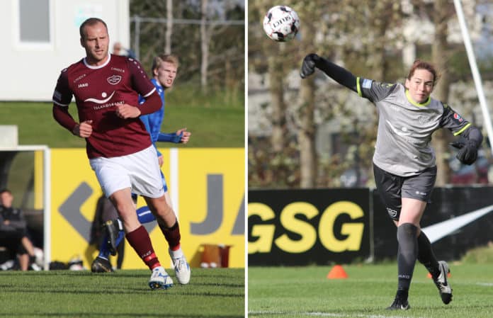 Guðjónsbikararnir, sem veittir eru fyrir framlag til félagsins og jákvæðni innan vallar sem utan, komu í hlut Þóru Jónsdóttur og Adams Arnar Sveinbjörnssonar.