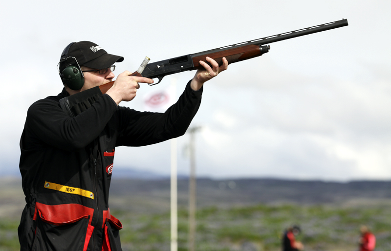 Skotmennirnir skjóta þrjár umferðir í dag keppni heldur áfram í fyrramálið og úrslitin hefjast kl. 14. Á sunnudaginn verður svo keppt með loftskammbyssu og loftriffli í reiðhöll Sleipnis á Brávöllum.