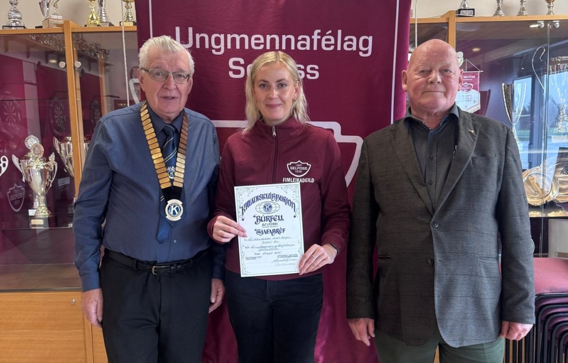 Kiwanisklúbburinn Búrfell á Selfossi færði á dögunum fimleikadeild og frjálsíþróttadeild Umf. Selfoss veglega styrki til að efla starfsemi deildanna.