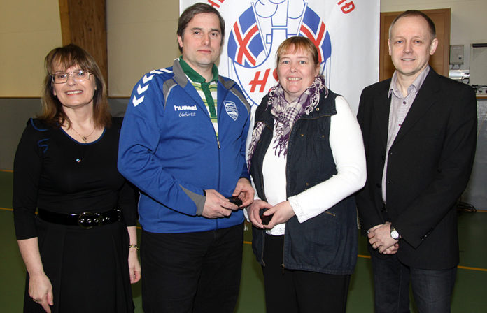 Þá voru hjónin Ásta Laufey Sigurðardóttir og Ólafur Elí Magnússon á Hvolsvelli sæmd starfsmerki UMFÍ. Þau Ásta og Ólafur hafa verið í forystuhlutverki innan Íþróttafélagsins Dímonar í áraraðir. Örn Guðnason og Björg Jakobsdóttir, stjórnarmenn hjá UMFÍ, heiðruðu Ástu og Ólaf.