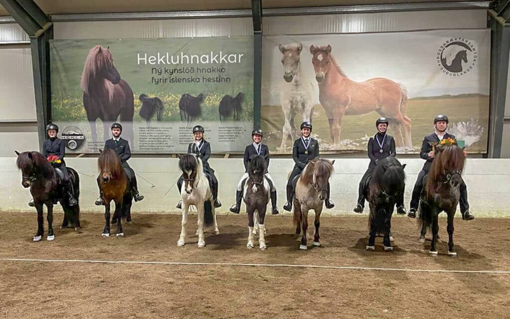 Í kvöld var það lið Árbæjarhjáleigu/Hjarðartúns sem stóð stigahæst eftir fjórganginn en Arnhildur Helgadóttir á Draumhyggju frá Eystra-Fróðholti endaði í 3. sæti í flokki atvinnumanna, Hekla Katharína Kristinsdóttir á Lilju frá Kvistum endaði í 10. – 11. sæti atvinnumanna, Rúna Björg Vilhjálmsdóttir á Aroni frá Þóreyjarnúpi endaði í 2. sæti í flokki áhugamanna og Rakel Nathalie Kristinsdóttir á Krás frá Árbæjarhjáleigu endaði í 7.-8. sæti í flokki áhugamanna.