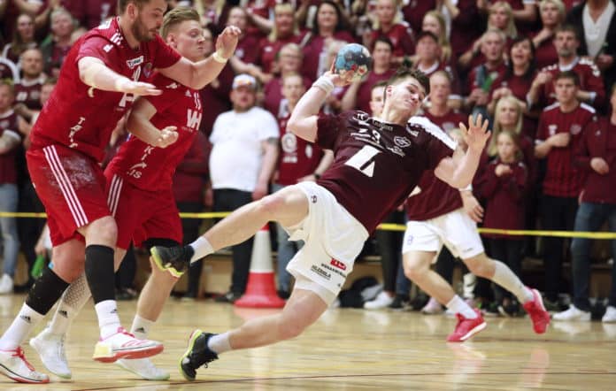 Elvar mun leika með danska liðinu Skjern á næstu leiktíð, undir stjórn Patreks Jóhannessonar. Hann var lítið að hugsa um það í kvöld og fagnaði góðum árangri Selfoss innilega.