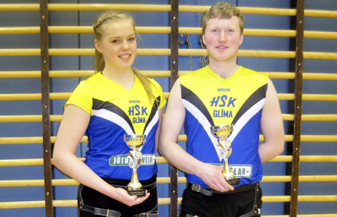 Marín Laufey Davíðsdóttir og Smári Þorsteinsson, HSK, tryggðu sér bæði bikarmeistaratitla á Bikarglímu Íslands sem fram fór í íþróttahúsi Kennaraháskólans í gær.