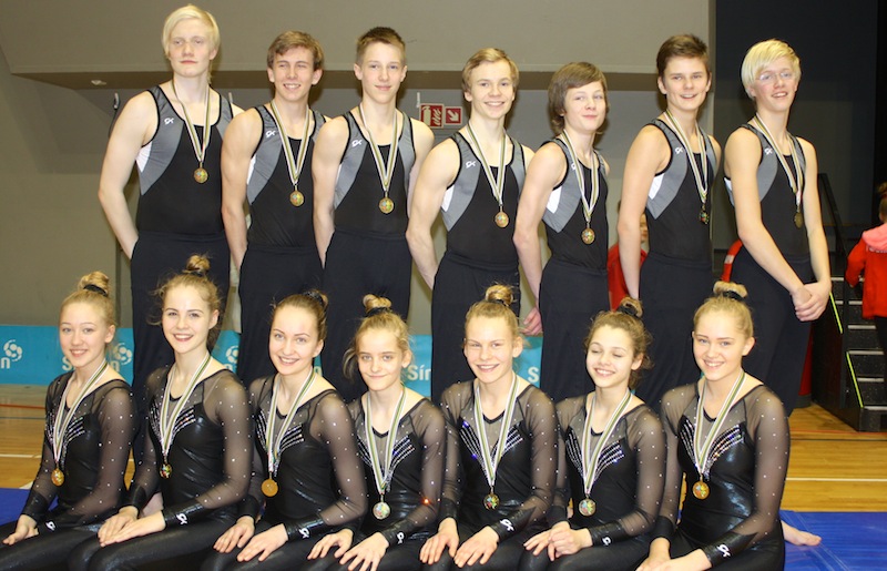 Krakkarnir úr fimleikadeildum Umf. Selfoss og Umf. Þórs áttu góðan dag á Reykjavík International Games í Laugardalshöllinni í dag. Mixlið Selfoss sigraði í 1. flokki blandaðra liða með góðu skori á öllum áhöldum.