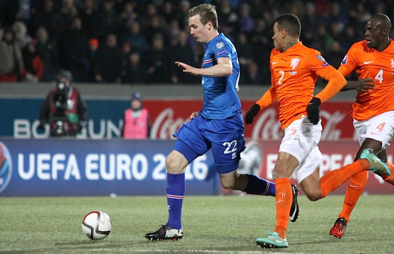Seint í leiknum slapp Jón Daði einn í gegn og átti skot framhjá hollenska markinu. Átti hann ekki að skora?