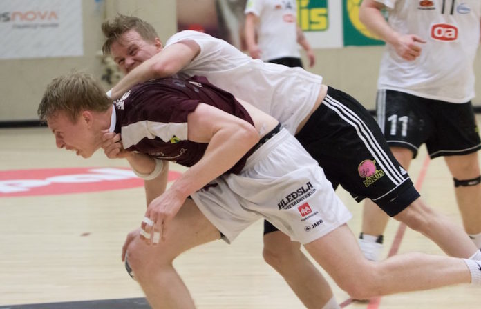 Það var hart barist í fyrri hálfleik og jafnt á öllum tölum lengst af. Bæði lið spiluðu hörkuvörn og gulum spjöldum og tveggja mínútna dómum rigndi yfir leikmenn.
